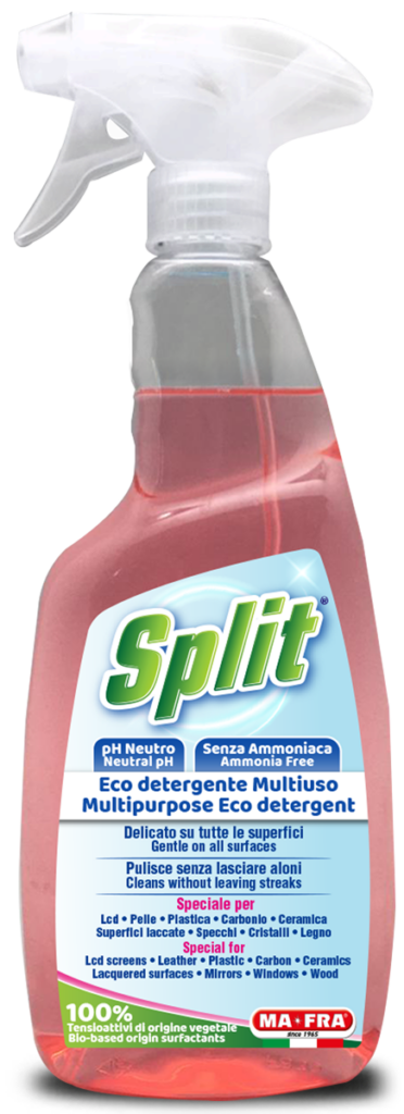 There is no need to rinse after use, making it ideal for any situation where you want a quick and effortless clean. Split is ideal for home and professional use, to keep auto glass, lacquered surfaces, windows, tables, desks, appliances and other hard surfaces looking clean and new, without compromising the environment or your health.