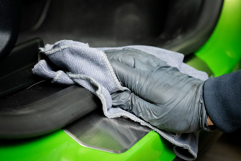 Wipe with a clean, dry quality microfibre cloth until all residue is completely removed.